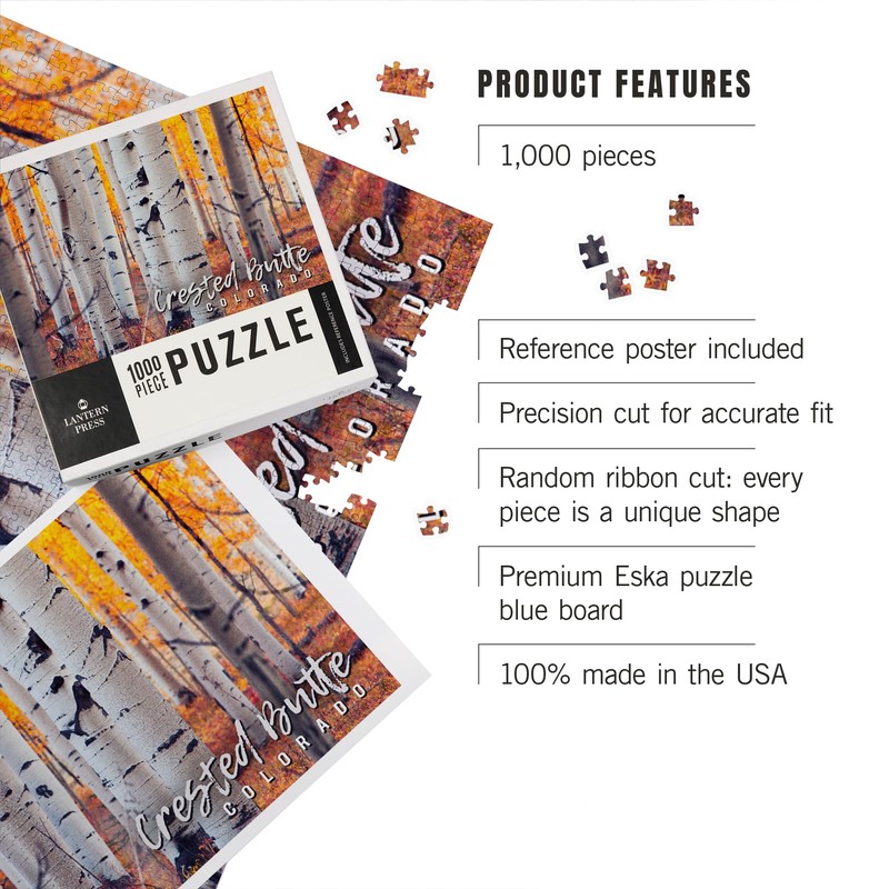 Lantern Press 1000 Piece Jigsaw Puzzle, Crested Butte, Colorado, Aspen Trees, Fall Colors