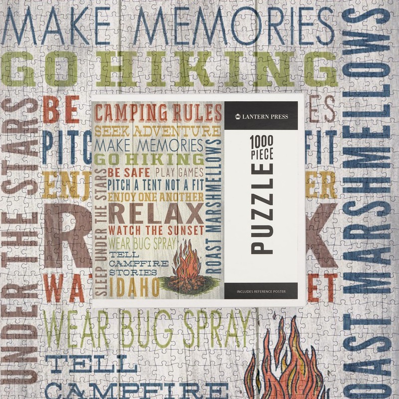 - 18.5 x 27.75 inches Lantern Press 1000 Piece Jigsaw Puzzle, Idaho, Camping Rules, Rustic Typography