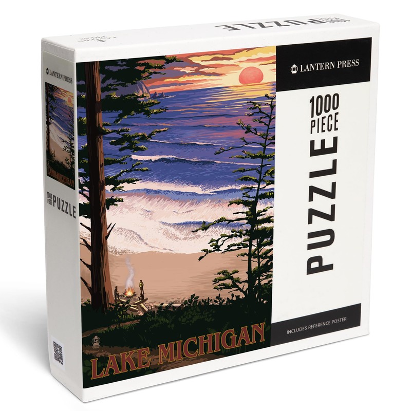 - 18.5 x 27.75 inches Lantern Press 1000 Piece Jigsaw Puzzle, Lake Michigan, Sunset on Beach