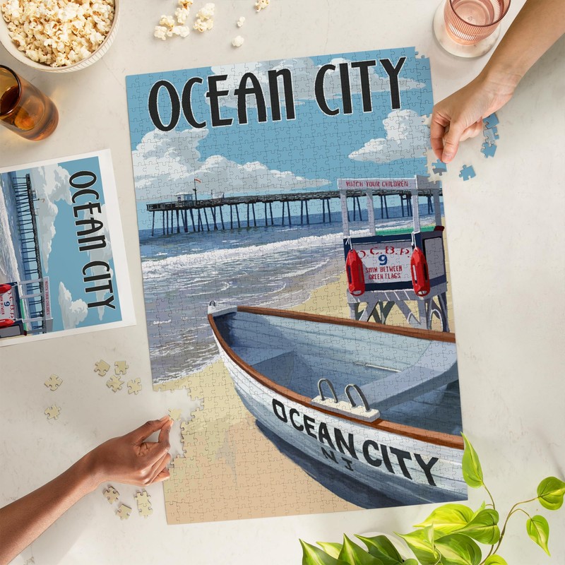 Lantern Press 1000 Piece Jigsaw Puzzle, Ocean City, New Jersey, Lifeguard Stand and Boat