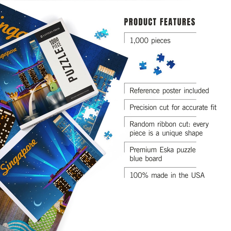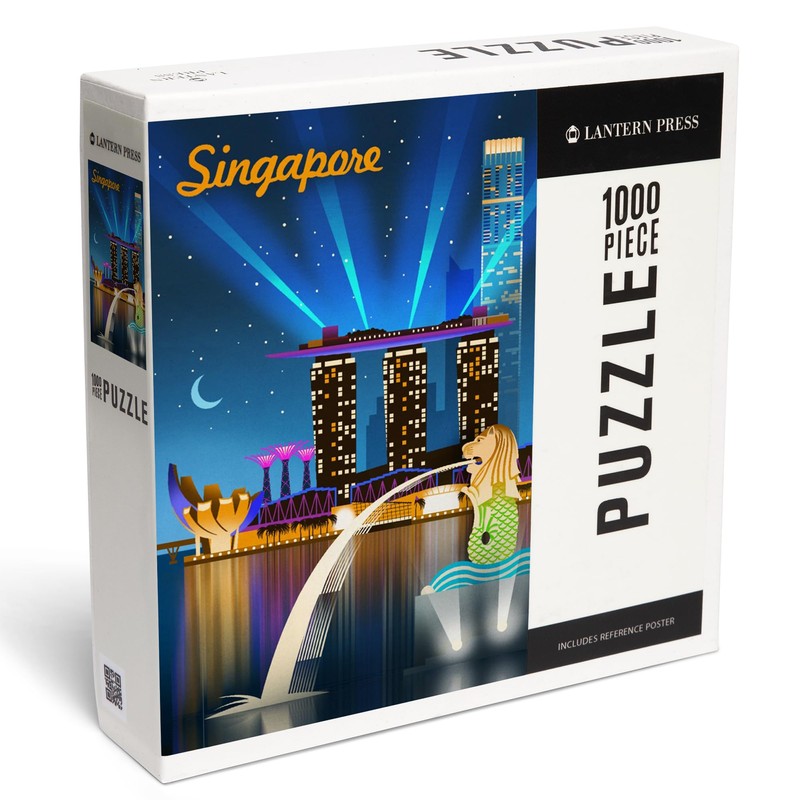 - 18.5 x 27.75 inches Lantern Press 1000 Piece Jigsaw Puzzle, Singapore Retro Skyline