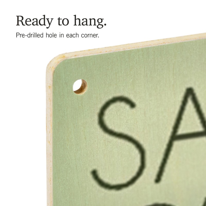 - Ready to hang wood sign with pre-drilled holes in each corner for quick and easy installation