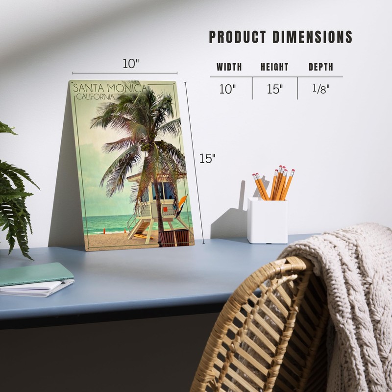 - 10 x 15 x 1/8 inch, Lantern Press 10x15 Inch Wood Sign, Ready to Hang Wall Decor, Santa Monica, California, Lifeguard Shack and Palm