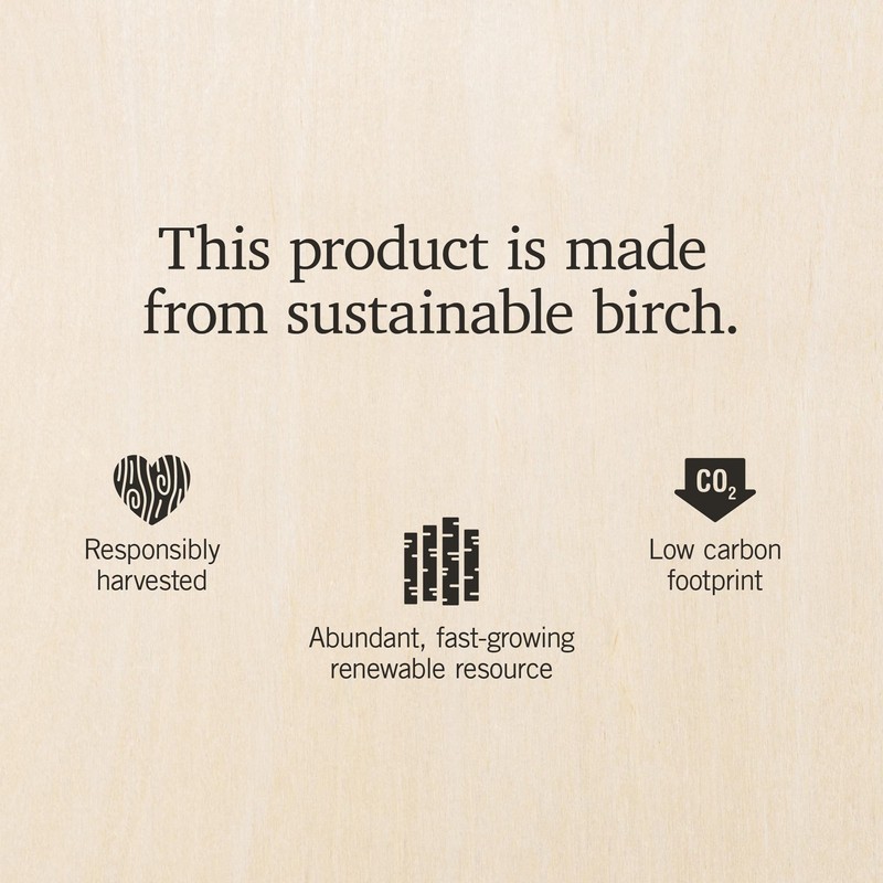 - 1/8 inch thick birch wood, responsibly harvested and sustainable with a low carbon footprint
