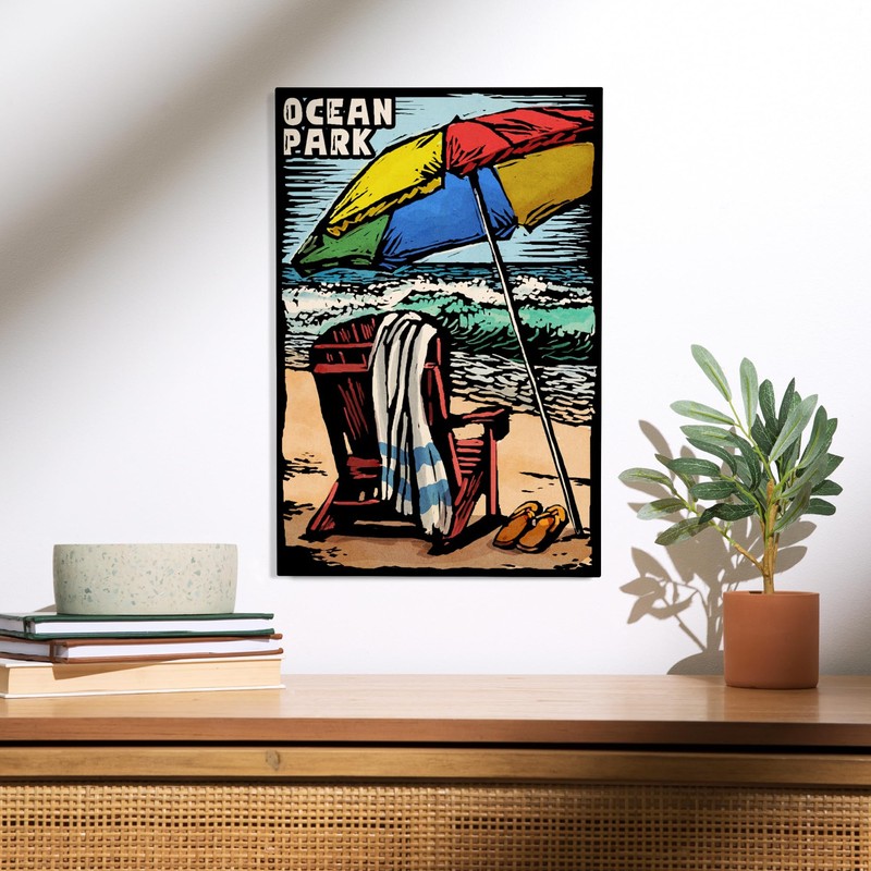 - 12 x 18 x 5/8 inch, Lantern Press 12x18 Inch Premium Wood Sign, Ready to Hang Wall Decor, Ocean Park, Beach Chair, Scratchboard