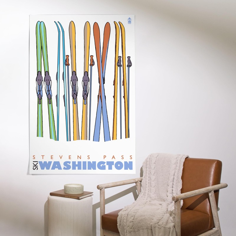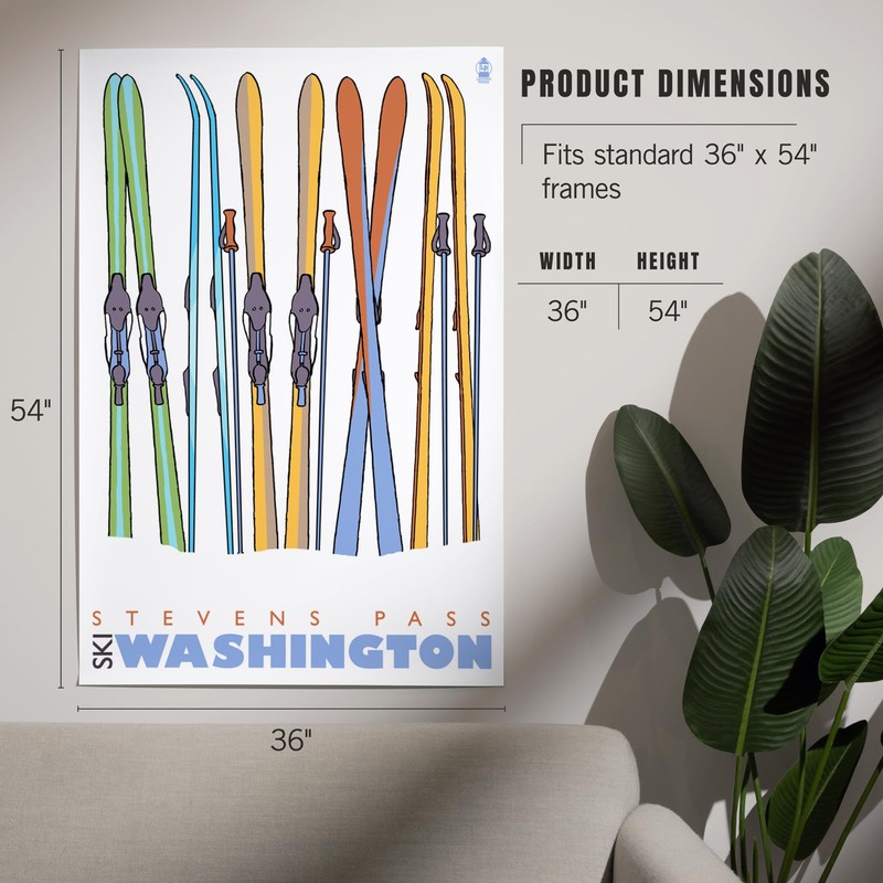 Lantern Press 36x54 Inch Giclee Print, Skis in Snow, Stevens Pass, Washington