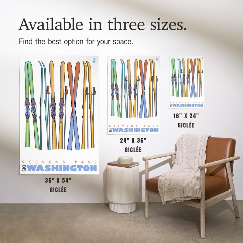 - 36 x 54 inch 36x54 Inch Giclee Print, Skis in Snow, Stevens Pass, Washington