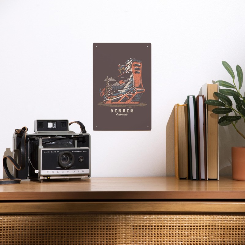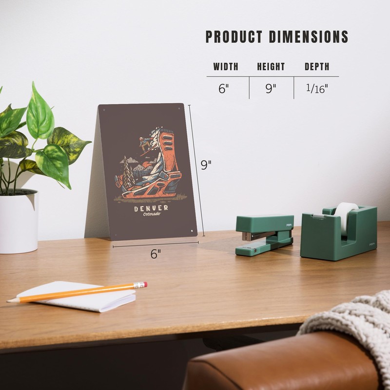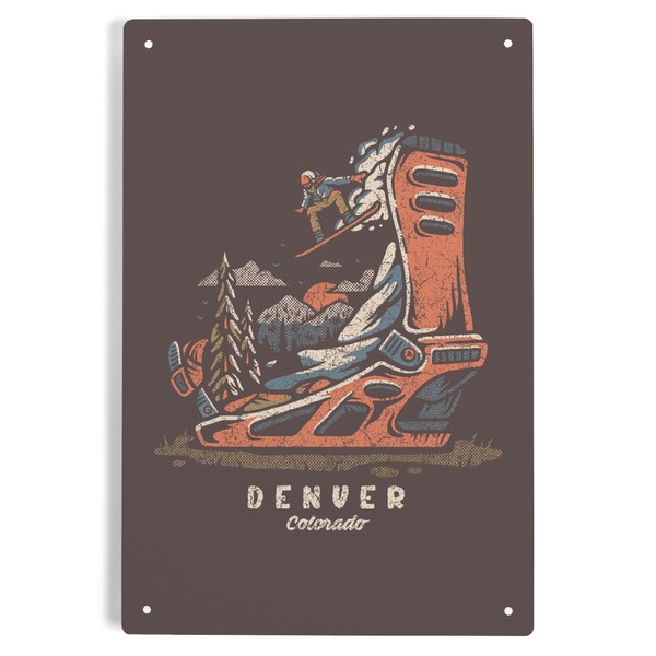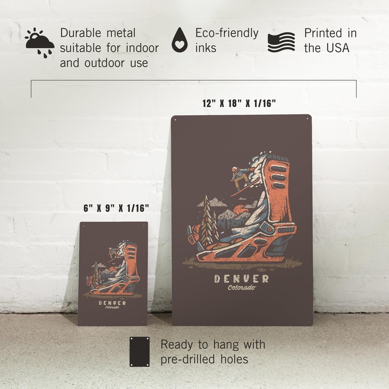 - 6 x 9 x 1/16 inch Lantern Press 6x9 Inch Metal Sign, Denver, Colorado, Snowboard Binding