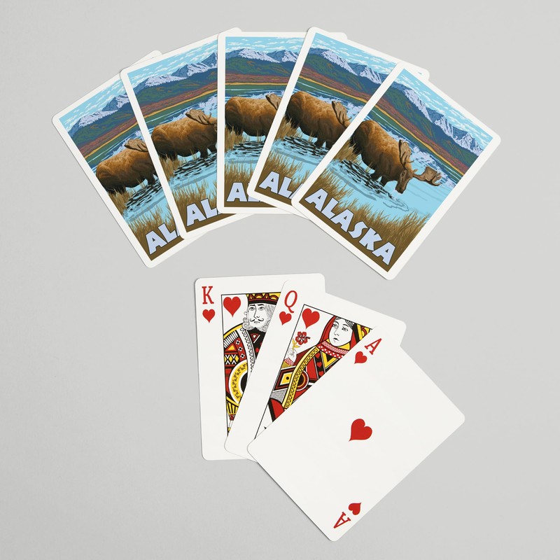 - Alaska, Moose Drinking (52 Playing Cards, Poker Size Card Deck with Jokers), Made in the USA.