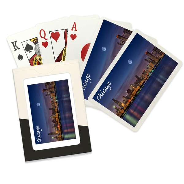 - Chicago, Illinois, Skyline at Night (52 Playing Cards, Poker Size Card Deck with Jokers), Made in the USA.