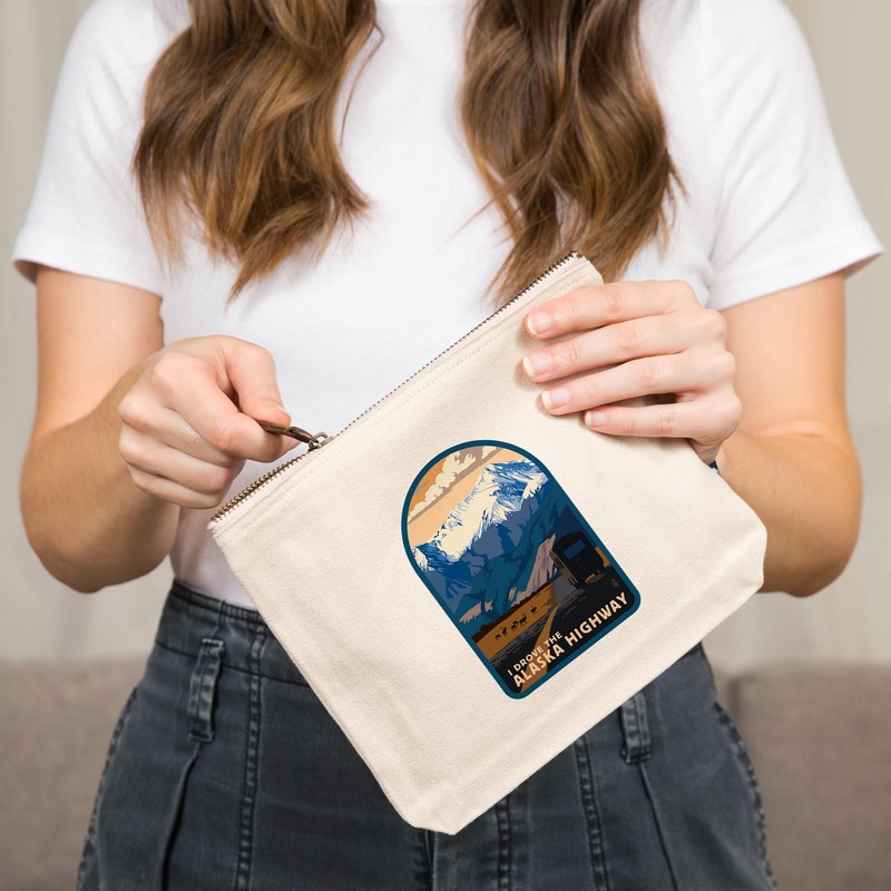 Lantern Press I Drove The Alaska Highway, 100% Cotton Zipper Pouch, Travel Accessory, Go Bag