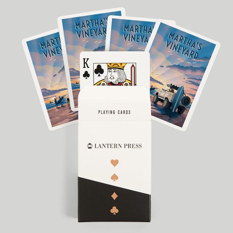 Lantern Press Martha's Vineyard, Massachusetts, Wake Up! Surf's Up!, Surfers on Beach (52 Playing Cards, Poker Size Card Deck with Jokers)