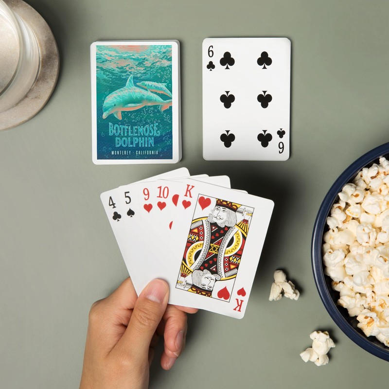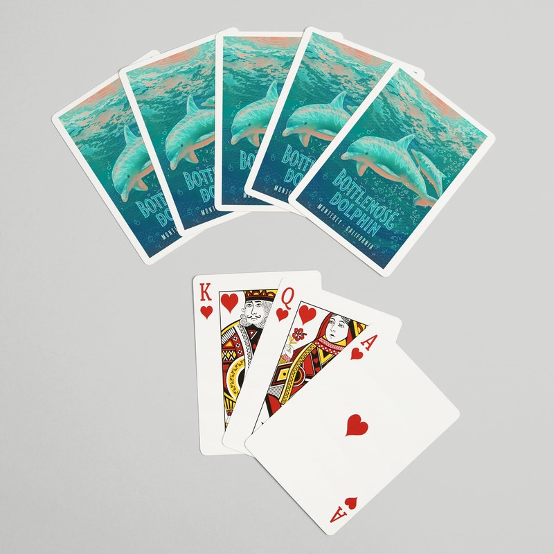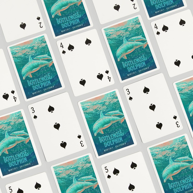 - Monterey, California, Fluid Linework, Bottlenose Dolphin (52 Playing Cards, Poker Size Card Deck with Jokers)