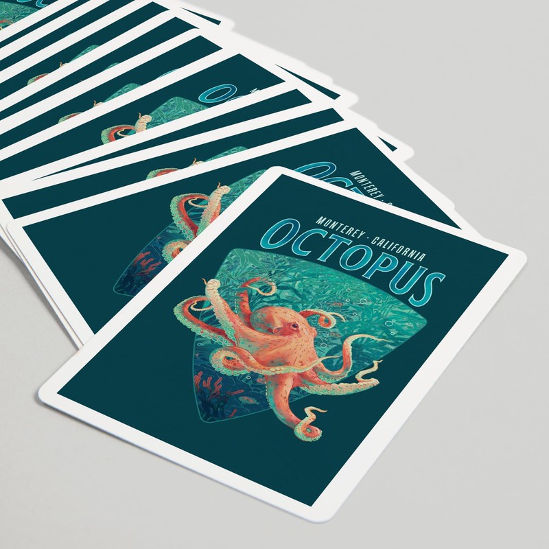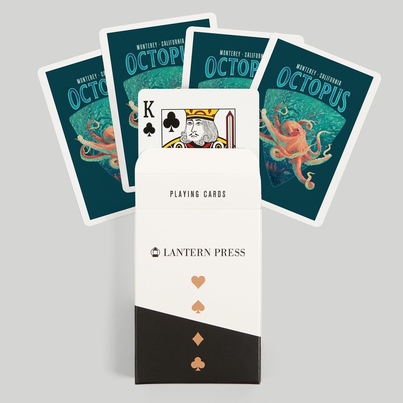 - Monterey, California, Fluid Linework, Octopus, (52 Playing Cards, Poker Size Card Deck with Jokers)