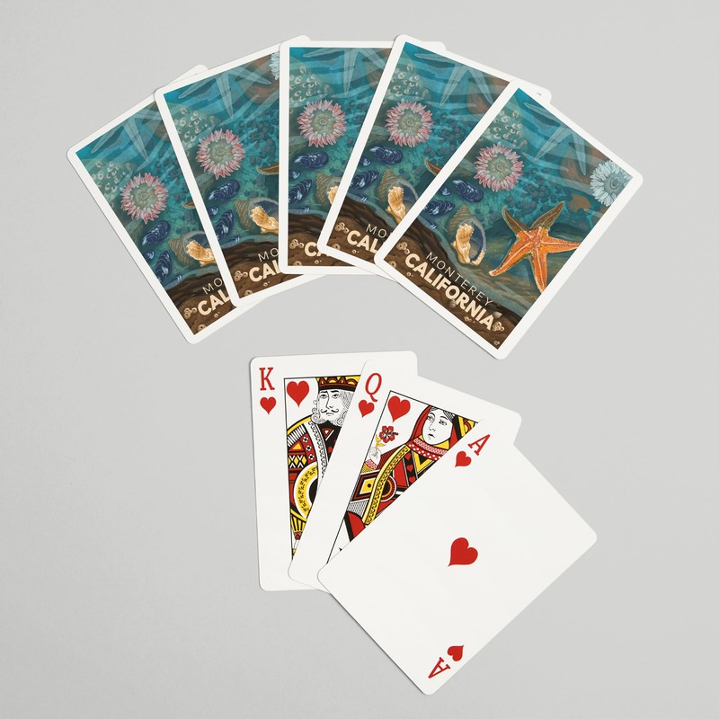 - Monterey, California, Tiny World Huge Wonders, Coastal Series, Starfish and Shells (52 Playing Cards, Poker Size Card Deck with Jokers)
