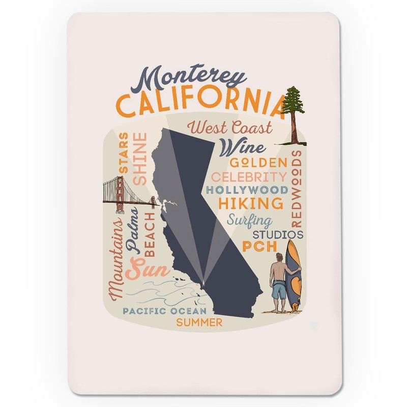 - Monterey, California, Typography and Icons, (52 Playing Cards, Poker Size Card Deck with Jokers)