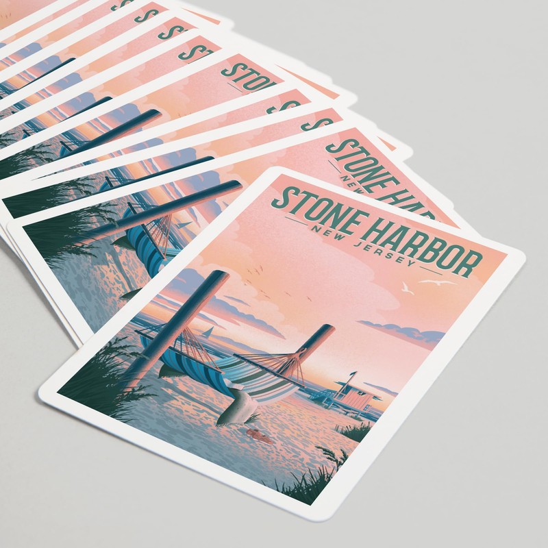 - Stone Harbor, New Jersey, Lithograph, Salt Air, No Cares, Hammock on Beach (52 Playing Cards, Poker Size Card Deck with Jokers)