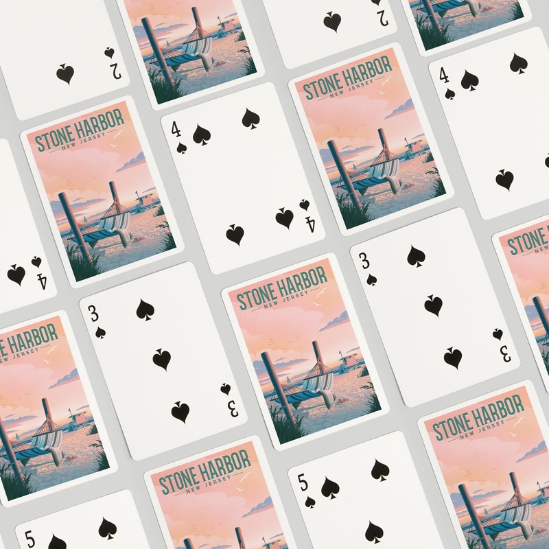 Lantern Press Stone Harbor, New Jersey, Lithograph, Salt Air, No Cares, Hammock on Beach (52 Playing Cards, Poker Size Card Deck with Jokers)