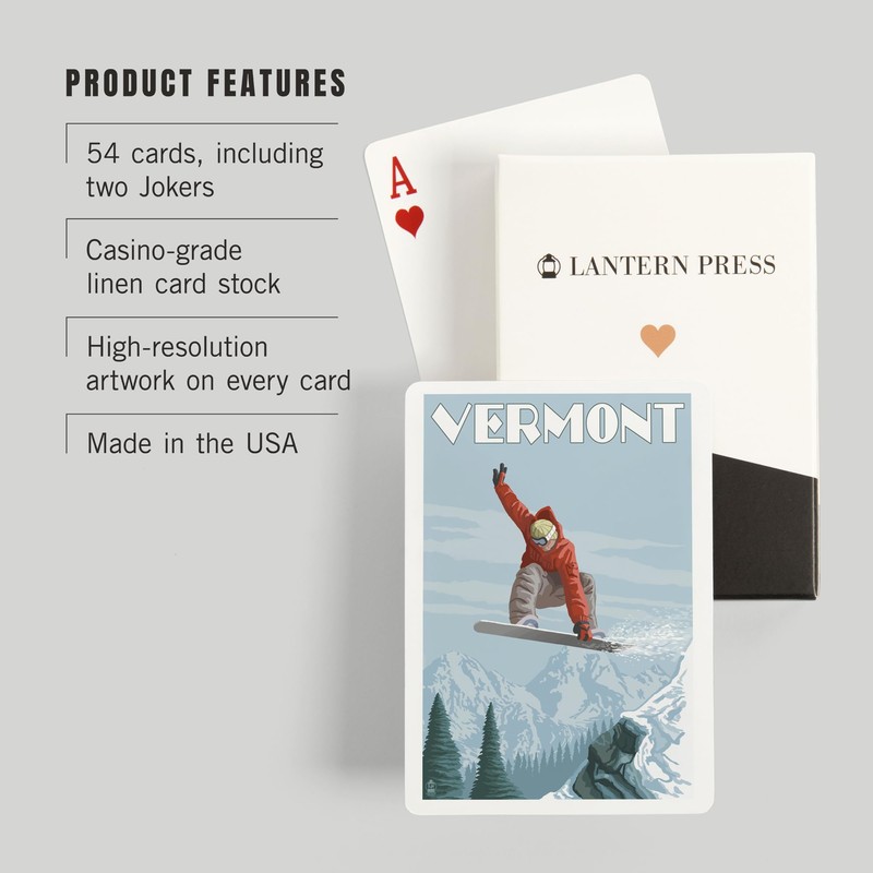 Lantern Press Vermont, Snowboarder Jumping (52 Playing Cards, Poker Size Card Deck with Jokers)