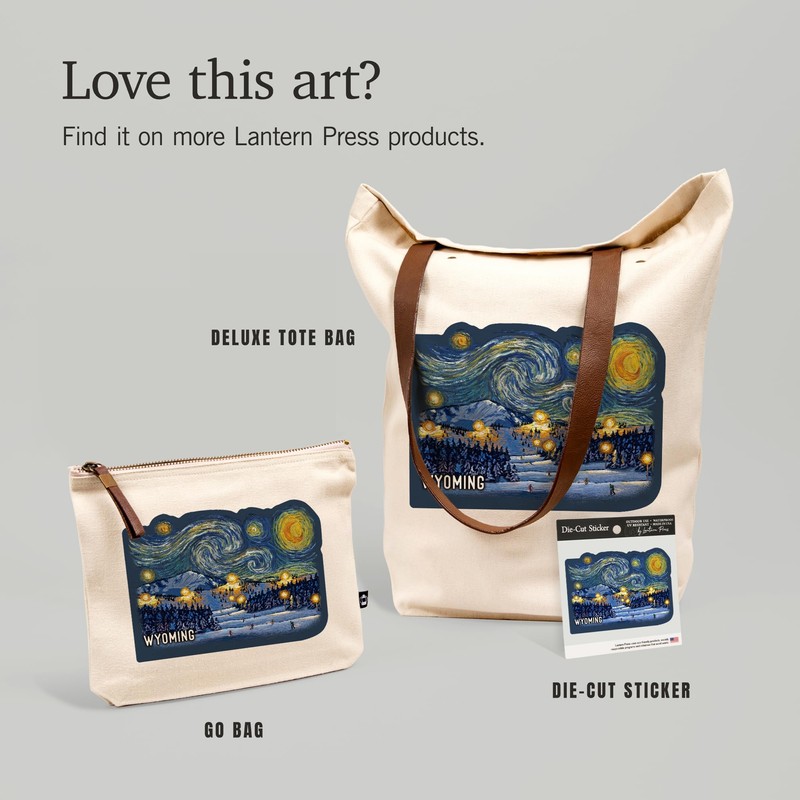 - Wyoming, Starry Night, Ski, 100% Cotton Zipper Pouch, Travel Accessory, Go Bag, Size of 7.25 x 9 inches.
