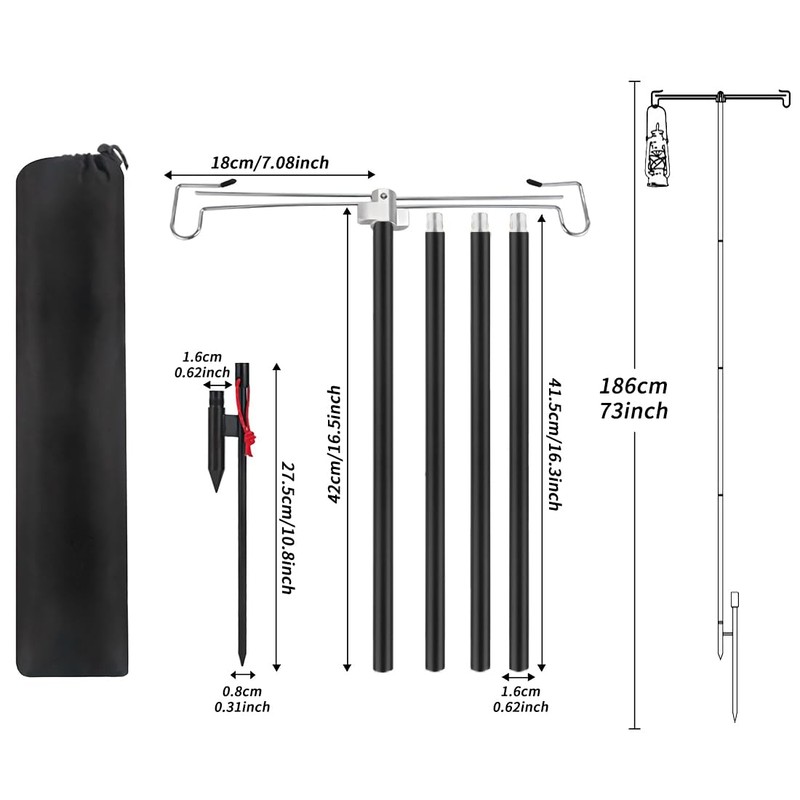 - Camping light polewhen in use, the hook can be easily pulled out. When storing, the hook can be hidden into the lamp pole offers an ultralight weight for outdoor carrying,compactive design will save much space for backpacking.