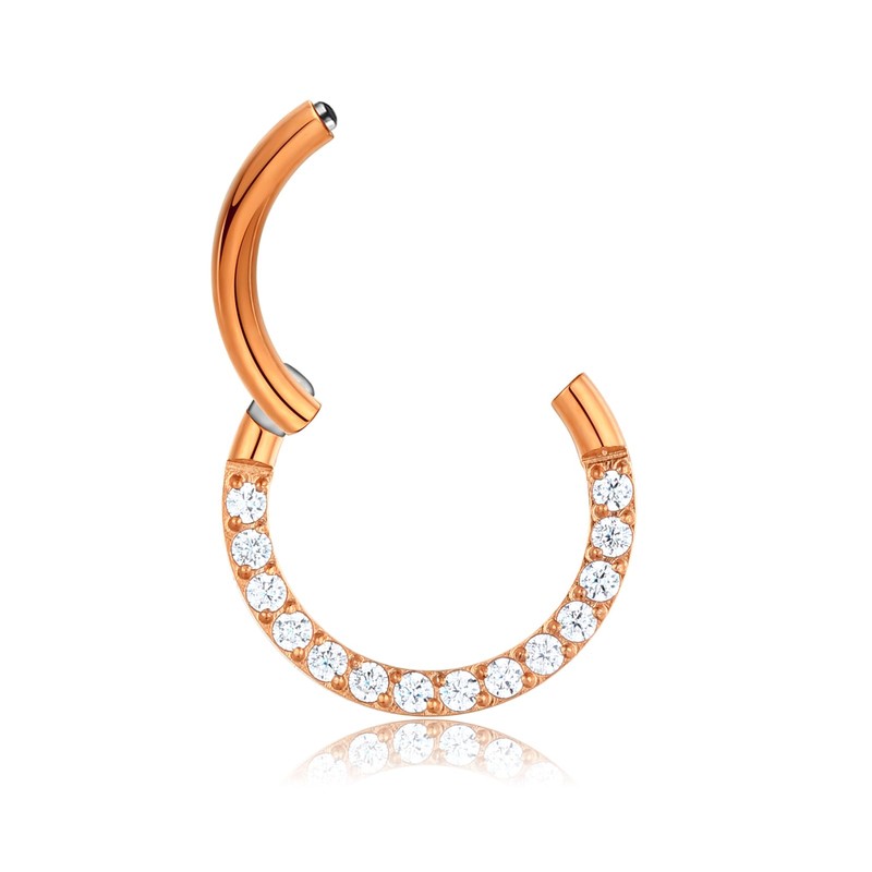 Lantine 16g 18g Septum Piercing Gold/Rose Gold/Black/Colourful/Steel Colour Hinged Segment Clicker Daith Piercing CZ + Surgical Steel Conch Tragus Rook 6 mm 8 mm 10 mm, Stainless Steel, No gemstone