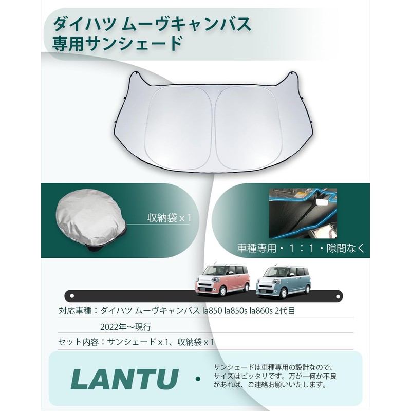 LANTU Sunshade for Daihatsu Move Canvas, One-Touch Sun Shade for Cars, Windshields, Perfect Size, 4 Layers, UV Protection, Custom Parts, Move Canvas, 2022, La850s La860s, 2nd Generation, Sun Shade,