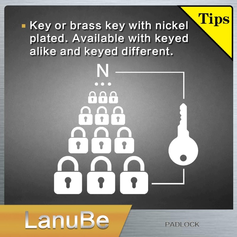 LanuBe Lock Laminated keyed Padlock (1-9/16", 40mm), keyed Alike Locks, Long Shackle,Marked Orange Plastic Hoop, Pack of 48
