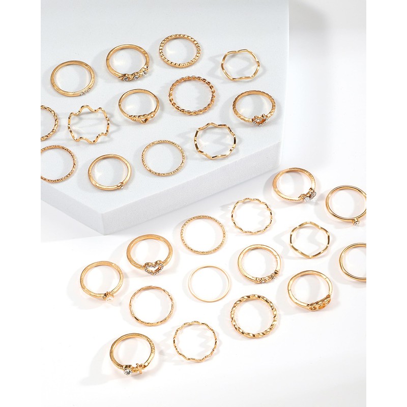 - Stacking Finger Rings:The style is simple and elegant, with cross ring, wave ring, heart ring, twist ring and so on. Many of the rings are set with numerous rhinestones and zirconias, which can sparkle in the sunlight or under the light, so you can easily become the focus of the crowd and exude glamor all the time.