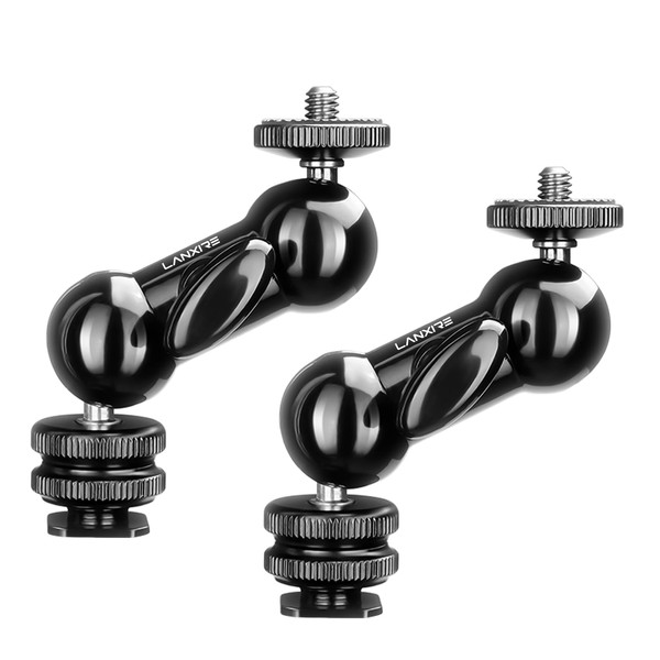 Lanxire Mini Magic Arm Multi-Function Double Ball Head with 1/4" Screw and Cold Shoe Mount - 2 Pack - for DSLR Cameras, Camcorders, LED Video Light, Monitor, Microphone, Max Load 4.4lb/2kg