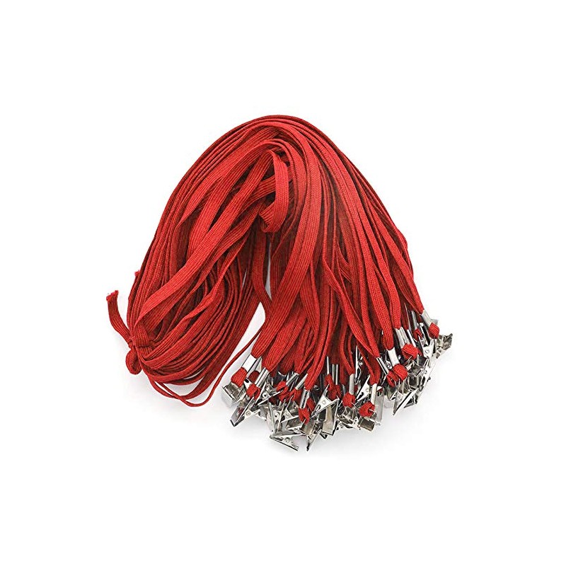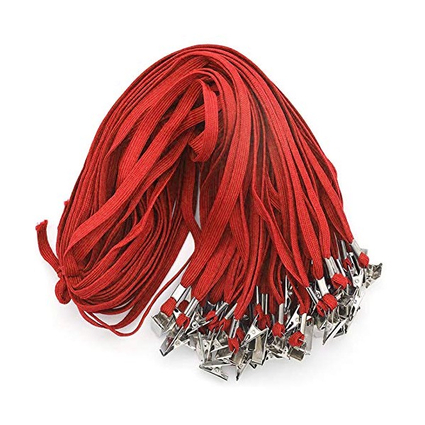 Lanyard 100 Pack Red Badge Lanyards Flat Lanyards Round 32" with Badge Clip