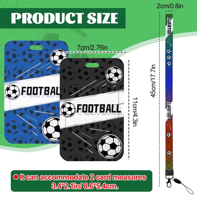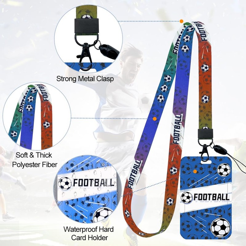 - ⚽Football Lanyards for Neck with Card Holder:The football lanyard ID card holder measures 4.33*2.76in/11*7cm, can accommodate a card measures 3.35*2.13in/8.5*5.4cm.The football lanyard width is 0.79in/2cm, long is 17.72in/45cm.The kids lanyard with card holder allows you to easily and securely place your badge, id, bank card, etc.