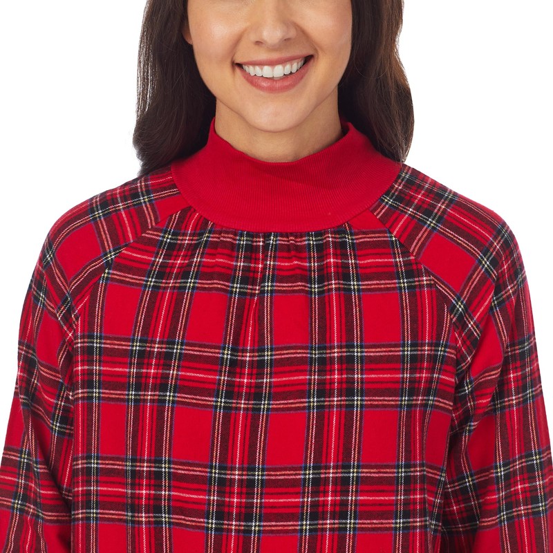 Lanz of Salzburg Sleepwear for Women Classic Long Sleeve Pop Over Neck Soft Flannel Pajama Nightgown - Red Tartan Plaid, X-Small