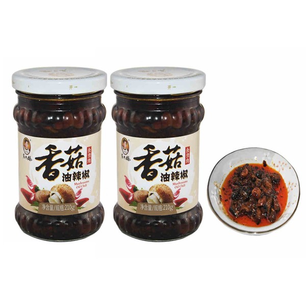Lao Gan Ma Chilli Sauce, XiangGuYouLaJiao 210g (Chilli Mushroom Sauce, Pack of 2)