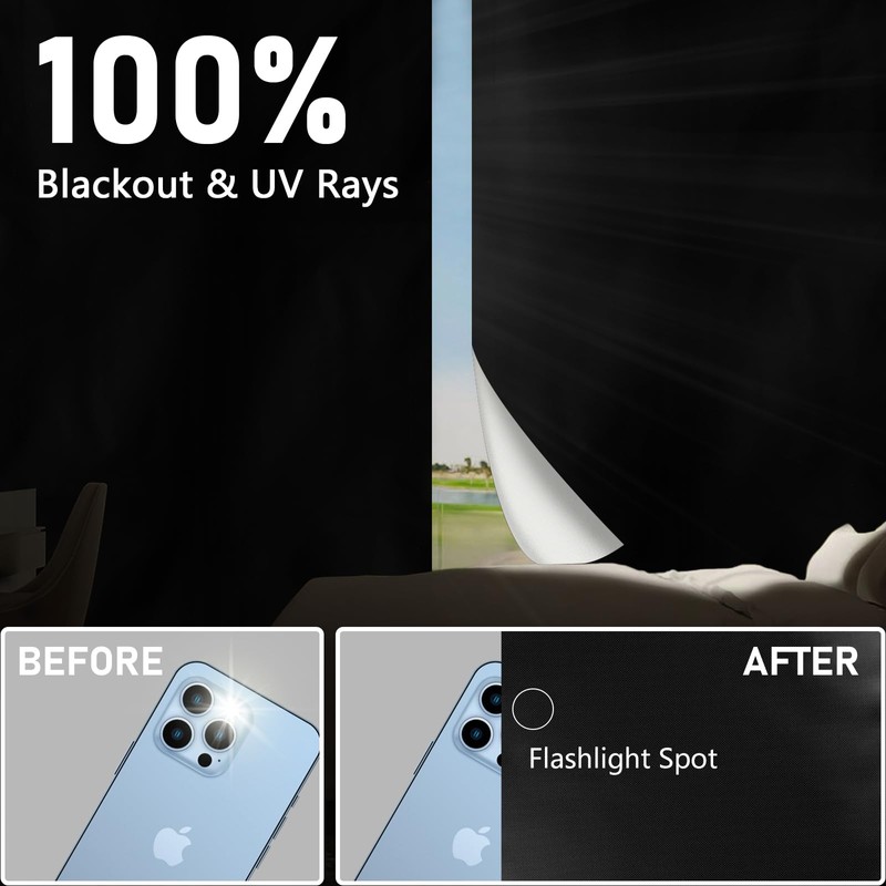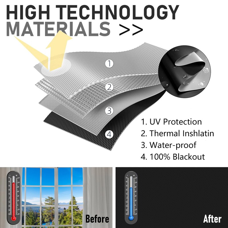 - 【100% BLACKOUT】: The temporary blackout blinds is made of high-density Oxford cloth material, and the reverse side is designed with silver coating. 100% blackout, isolate sunlight, reflect heat, create a dark and comfortable environment, enjoy a comfortable and relaxing sleep.