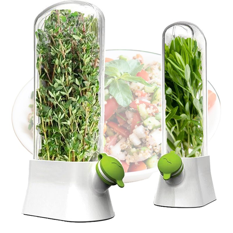 LAOGUATON Herb Keeper with Scissors, Clear Container for Fresh Parsley, Cilantro, 10 x 4 inches