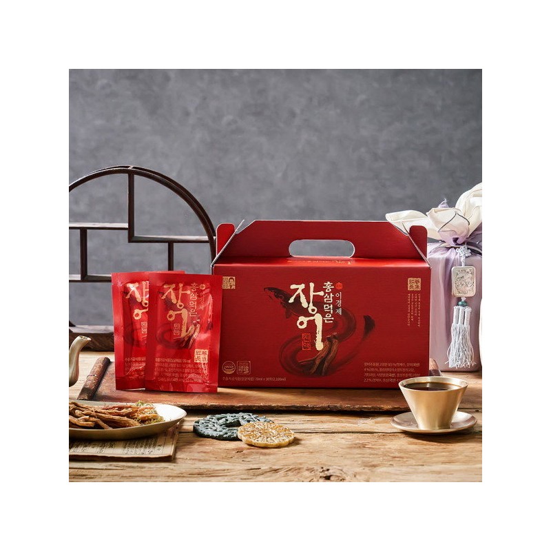 - Name and content of raw materials: Eel mixed extract 95.5% [purified water, eel (domestic) 4%, angelica root (domestic) 1.5%, mugwort leaves (domestic) 1.5%, mint leaves 1.1%, dried ginger, centella asiatica leaves , Injinho, tangerine peel, dried jujube, licorice, arrowroot, peony root, astragalus, Cheongung rhizome, cinnamon, Rehmannia glutinosa, Bokbunja, Bokryeong sclerotia, Gujeolcho, Reishi mushroom, motherwort aerial parts], red ginseng extract 4.5% [isomaltooligosaccharide, Fructose, honey bee honey (domestic), red ginseng extract {purified water, red ginseng (6 years old, domestic / 70% red ginseng root, 30% red ginseng) 4%} 5.5%]