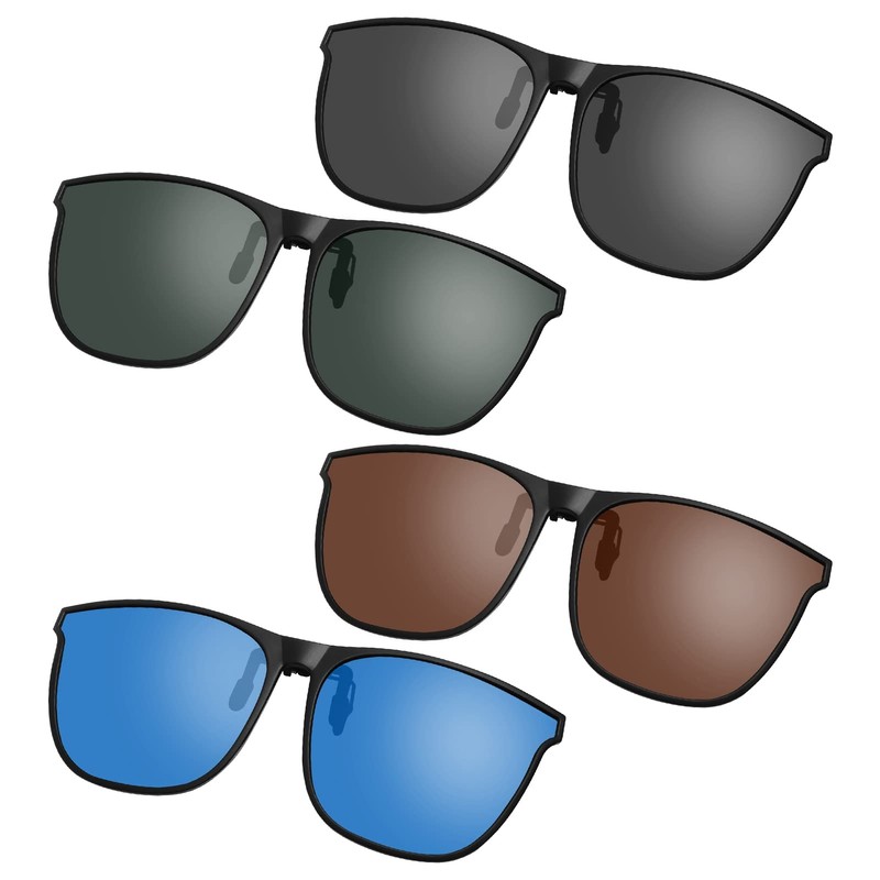 LAOKEAI 4 Pcs Clip On Sunglasses Oversized Polarised Clip On Sunglasses Retro Flip Up Sunglasses UV400 Protection for men women Outdoor, Driving, Fishing