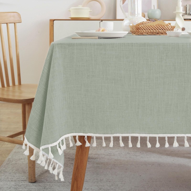 - Tassel edge design: The linen tablecloth with beautiful fringe tassel gives you a decent elegant feeling. Cute fringe tassel pom-poms edge