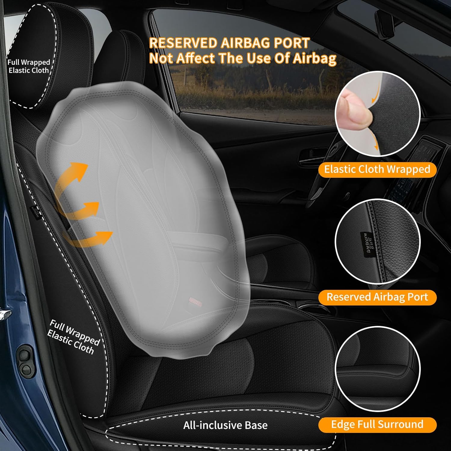 LAONNVIR Car Seat Covers Full Set Custom Faux Leather For 2023-2025 Toyota Prius 5 Seats