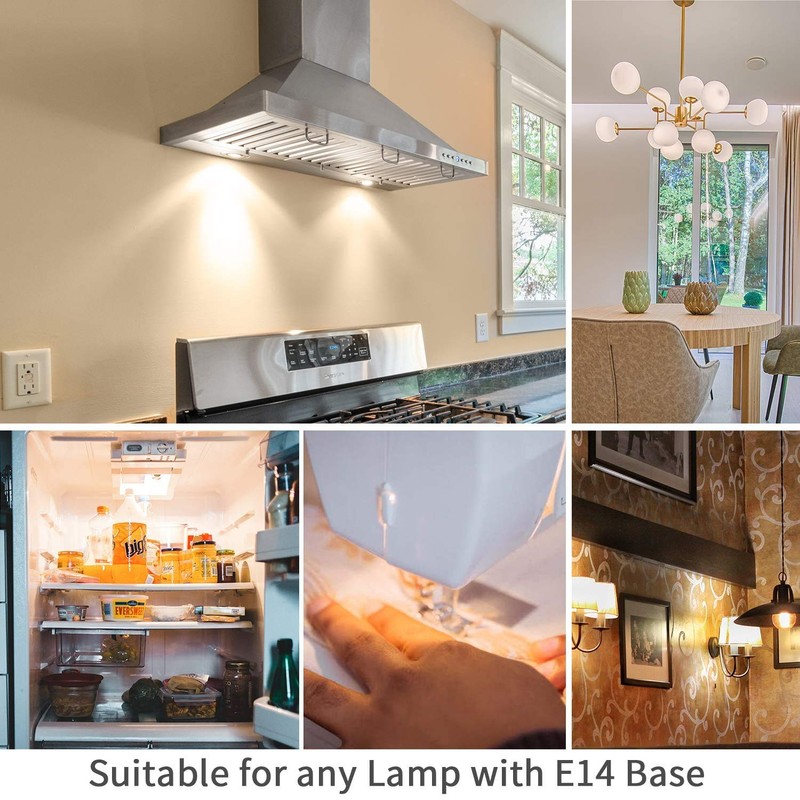 - ✧【NO MORE FLICKER】- Headache for light strobe? Anti-flicker tech enables E14 leds illuminate in stable and comfortable 3000k warm white light with zero flicker, preventing eye fatigue; emits 3000K cozy warm white is ideal for led cooker hood bulb, chandeliers, pendant lamps, table/floor lamps,ceiling fan lights etc. Help decorate you home in the way you want