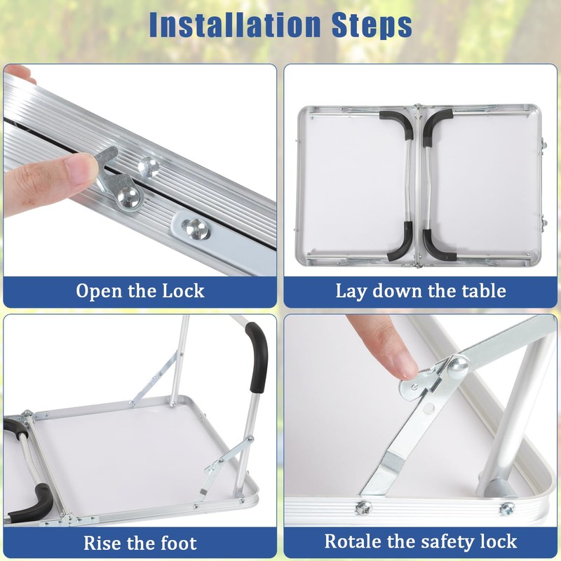- Easy to set up and fold : Quickly install and fold in 15 seconds, no assembly required. The picnic table has a safety lock, and the connection between the table leg and the table adopts a triangular structure bracket design, and the unique U-shaped leg structure increases the stability, so there is no need to worry about shaking.