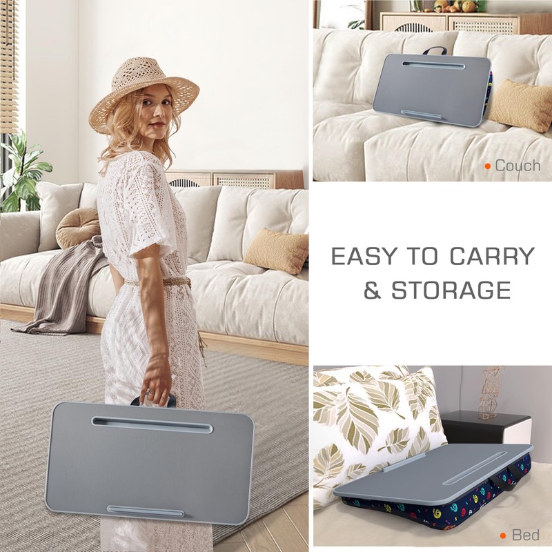 - LIGHTWEIGHT & PORTABLE: This lap desk for laptop with cushion is designed with a durable handle that makes it easy to carry and weighs 3.5 pounds. Take the lap desk with you to the library, dorm, office, and airport for a pleasant experience. Ideal for adults, College students, etc.