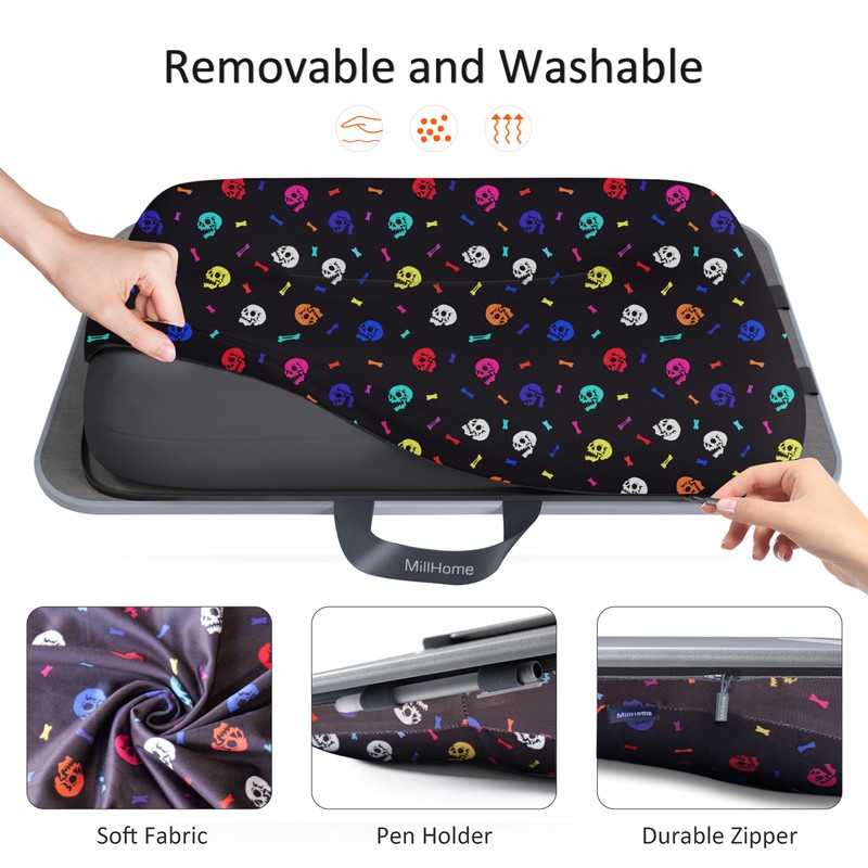 Lap Desk, Lap Desk for Laptop with Cushion, Laptop Lap Desk, Cushion Detachable and Washable, fits up to 17 in Laptop, with Tablet Slot and Stopper, Used as Lap Desk for Laptop, MillHome(Black Skull)