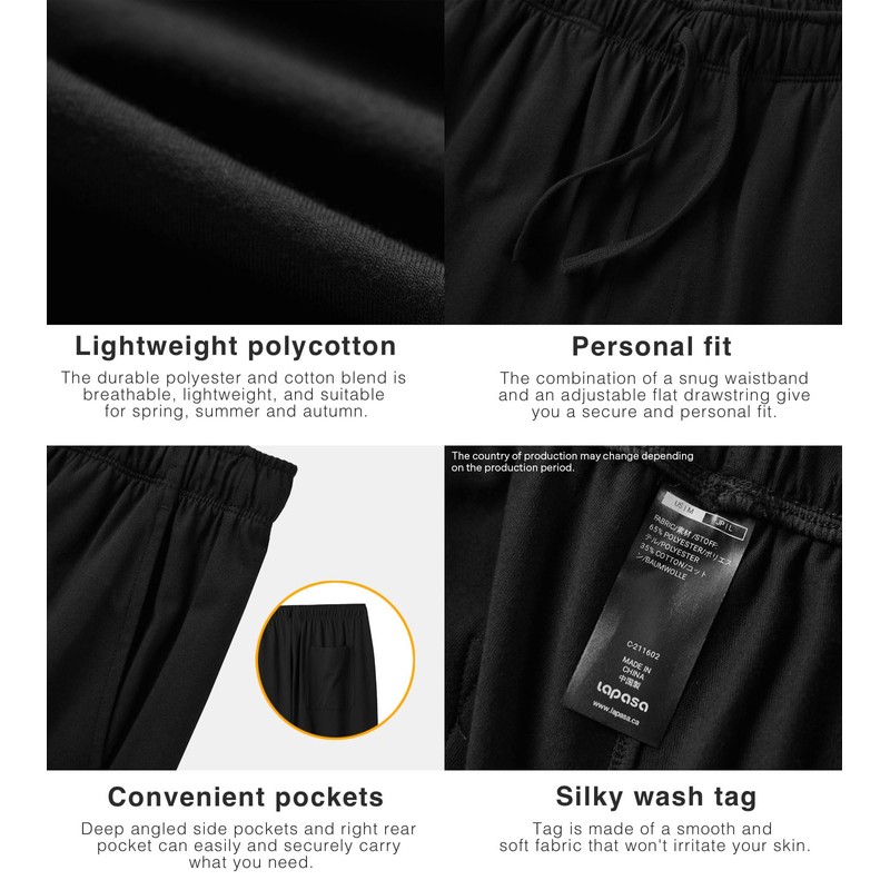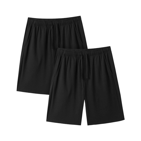 LAPASA 2 packs Men's Poly-cotton Lightweight Lounge Shorts M93 (M93 Black, Sm...