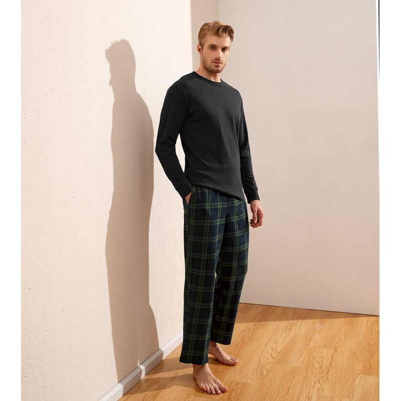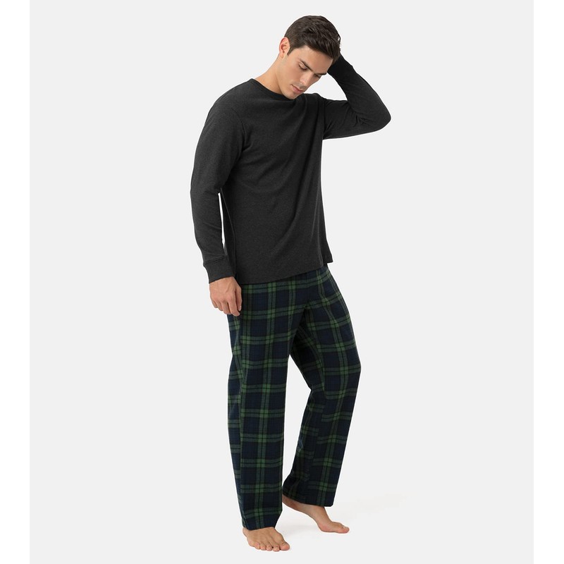 LAPASA Men's Pajama Set 100% Cotton Flannel Top Long Sleeve & Bottom Pants Plaid Sleepwear PJ Sleepwear Lounge Comfy M79 X-Large (Cotton Top+flannel Bottom) Green&navy Plaid