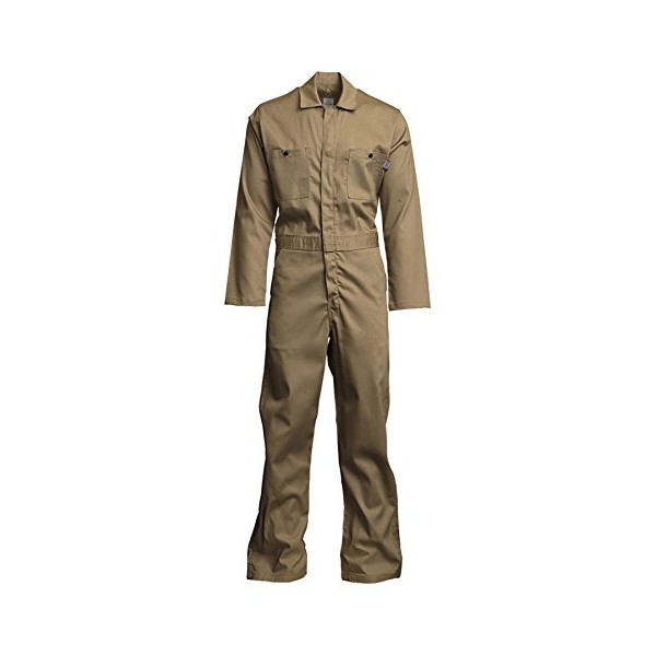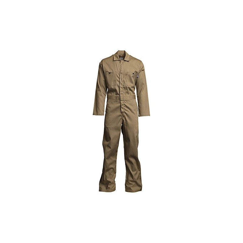 Lapco FR CVEFR7KH-LAR TL Flame Resistant Economy Coveralls, 100% Cotton Twill with Moisture Management, HRC 2, NFPA 70E, 7 oz, Large Tall, Khaki