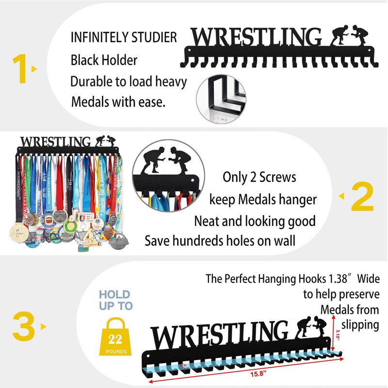 - 【ORIGINAL MEDAL HOLDER DESIGN】lapetale fashion designed wresting medal display rack for all medals and ribbons. Medal hanger with sturdy and solid surface better than other similar medal holder. sports medal hanger can holds up medals and ribbons easily. medal holder for sports with sturdy metal material and original design, which different from other medal holder on the market, suit for custom medals display hanger, medal display gymnastics, soccer, dancing, wrestling, running