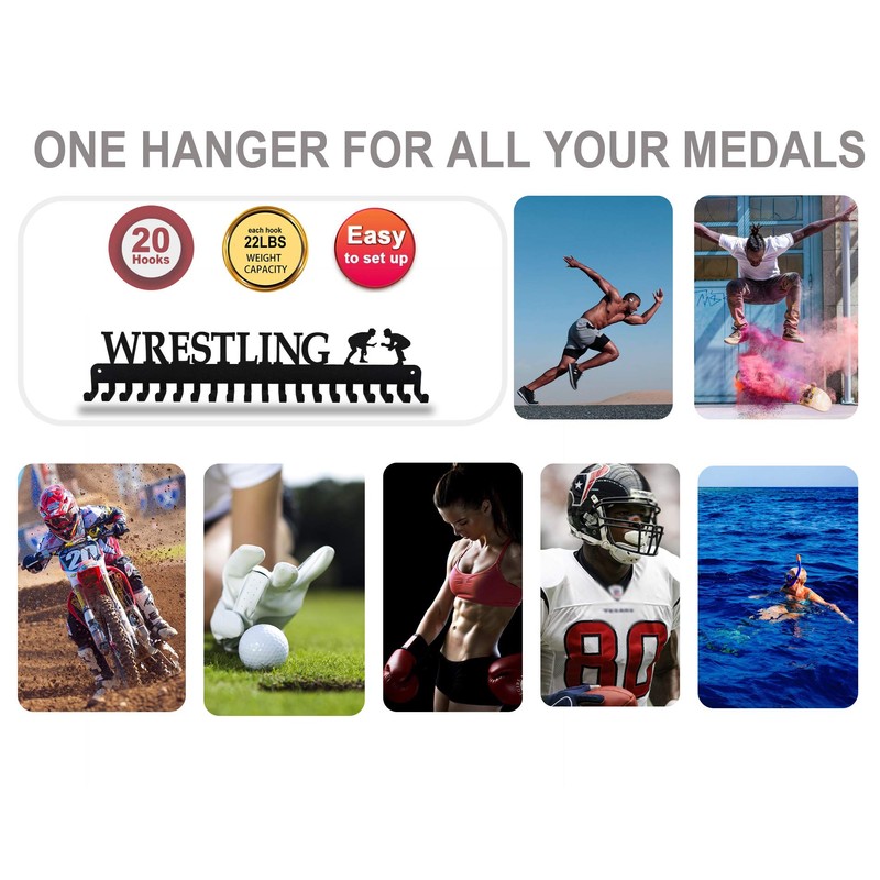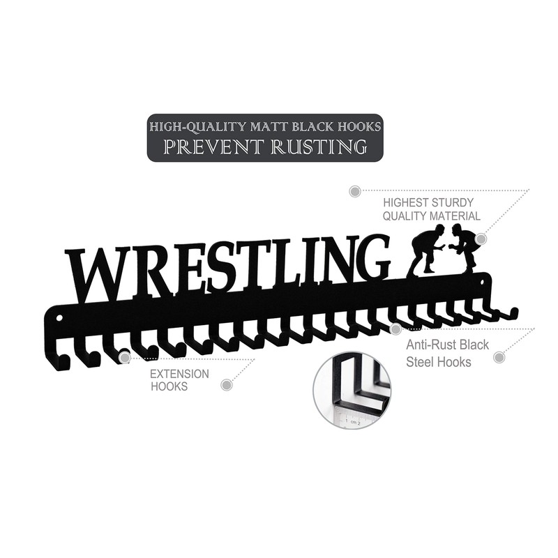 Lapetale Fashion Wrestling Medal Hanger Display Medal Holder Hanger Display Rack Frame with 20PCS Hanging Hooks Upgraded Extension Hooks Easy Install Easy to Use Wrestling Medal Display Rack
