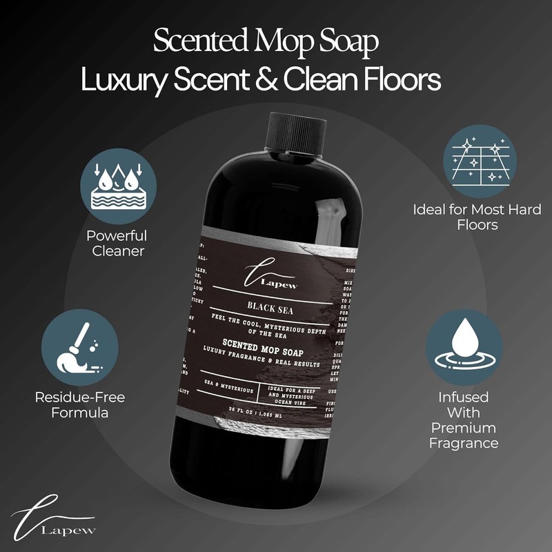 Lapew Black Sea Scented Mop Soap Concentrate 36 oz | Premium Fragranced Floor Cleaner | Streak-Free | Hard Floor Cleaning Solution | Eco Friendly | Made in USA